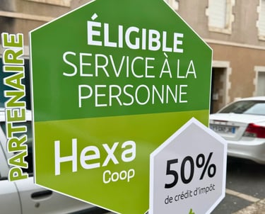 Grâce à notre partenariat avec Hexa Coop, bénéficiez automatiquement d’un crédit d’impôt de 50% sur toutes nos prestations à domicile. Plus besoin d’attendre votre déclaration fiscale, la réduction s’applique immédiatement !